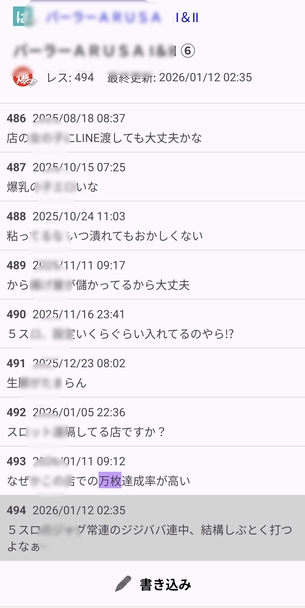 データを確認して、そのまま爆サイの店舗スレへ