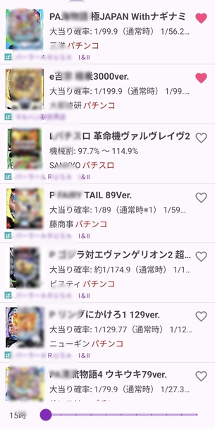 マークした店舗が新台を入れたら❤️マークでお知らせ。お宝台の導入を逃しません